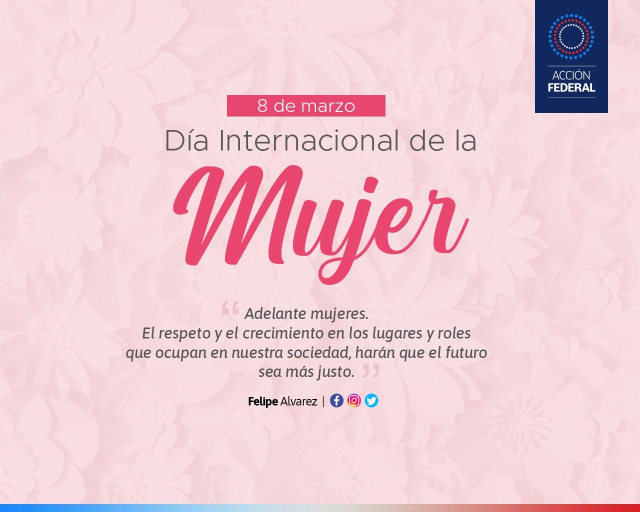 DÍA INTERNACIONAL DE LA MUJER Celebraciones 08/03/202110/03/2021Deja un comentario on DÍA INTERNACIONAL DE LA MUJER Un especial y afectuoso saludo a todas las mujeres riojanas que nos inspiran a ser mejores día a día. Compártelo:TwitterFacebookLinkedInWhatsApp