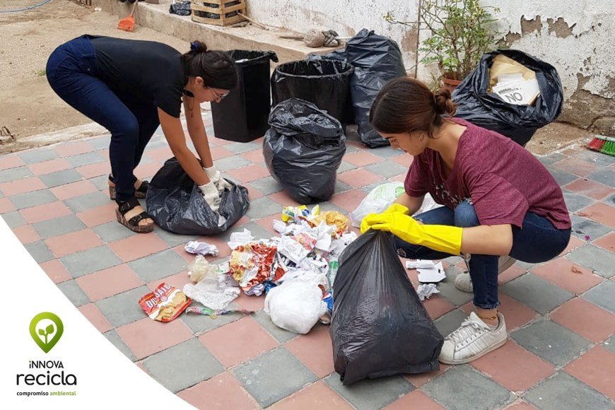 Desde el mes de diciembre de 2018 comenzamos a clasificar en origen todos los residuos que generamos en nuestro espacio de trabajo. Separamos materiales en secos y húmedos buscando recuperar la mayor cantidad de residuos. De esta forma, reducimos los volúmenes desechados al circuito municipal de recolección y acopio de basura.