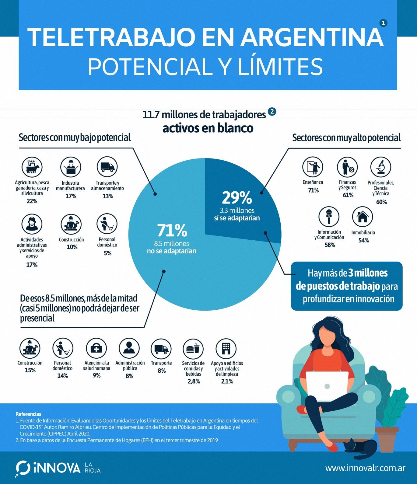 ✅ En el contexto de la emergencia sanitaria por la pandemia del Covid-19 surge el interrogante sobre el potencial para el teletrabajo en Argentina, uno de los desafíos centrales del mercado laboral en el corto plazo.